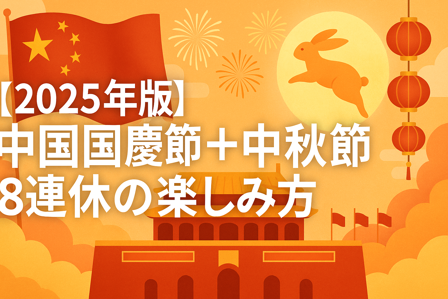 中国ライフ 【2025年版】中国国慶節+中秋節 8連休の楽しみ方と仕入れ注意点 国慶節とは?中国の国慶節(こっけいせつ)は 1949年10月1日の建国記念日 を祝う祝日です。毎年10月1日〜7日が法定の大型連休となり、春節と並ぶ「中国二大ゴールデンウィーク」として有名です。2025年は中秋節と重なって「8連休」2025... 2025.09.30 中国ライフ生活